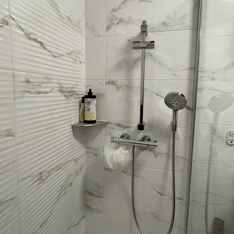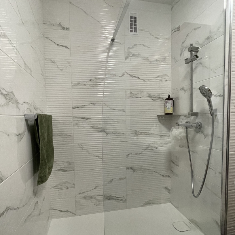 La douche, large et confortable, devient un véritable espace de bien-être, pensé pour durer.
