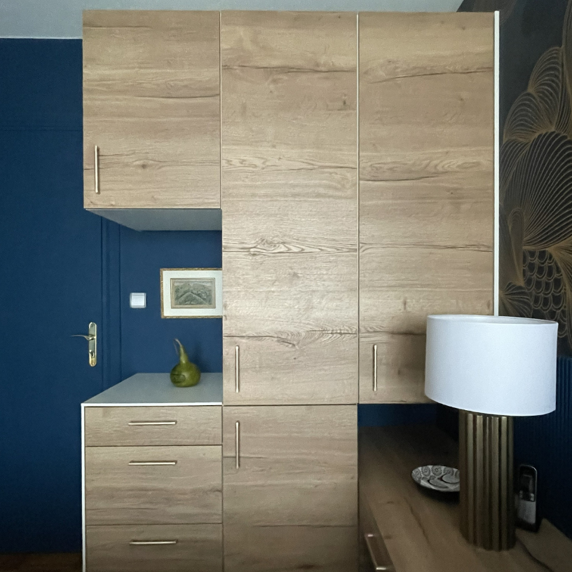 Ma cliente m’a contactée pour l’accompagner dans la rénovation de sa chambre et de sa salle de bain à Écully. Deux espaces du quotidien qu’elle souhaitait rendre à la fois plus fonctionnels, plus esthétiques et plus agréables à vivre, tout en respectant quelques éléments existants auxquels elle tenait.
