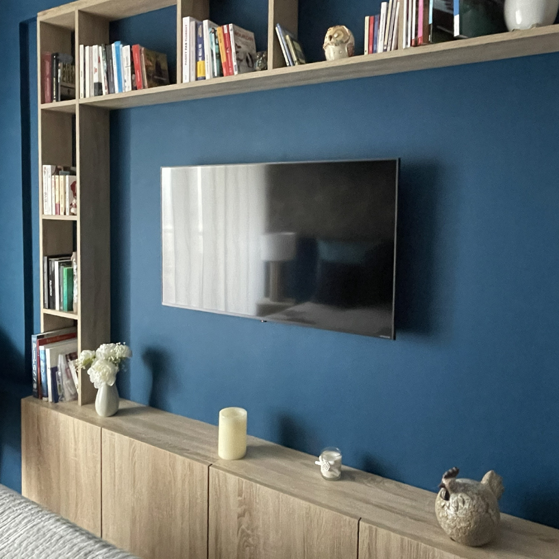 La réalisation des travaux a été menée avec soin par B&R Déco, partenaire de confiance, et la bibliothèque sur mesure par FréRy Créations.